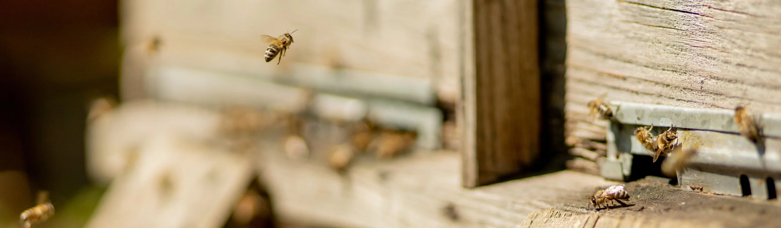 Beekeeper in protective clothing inspecting a beehive with a frame full of bees.